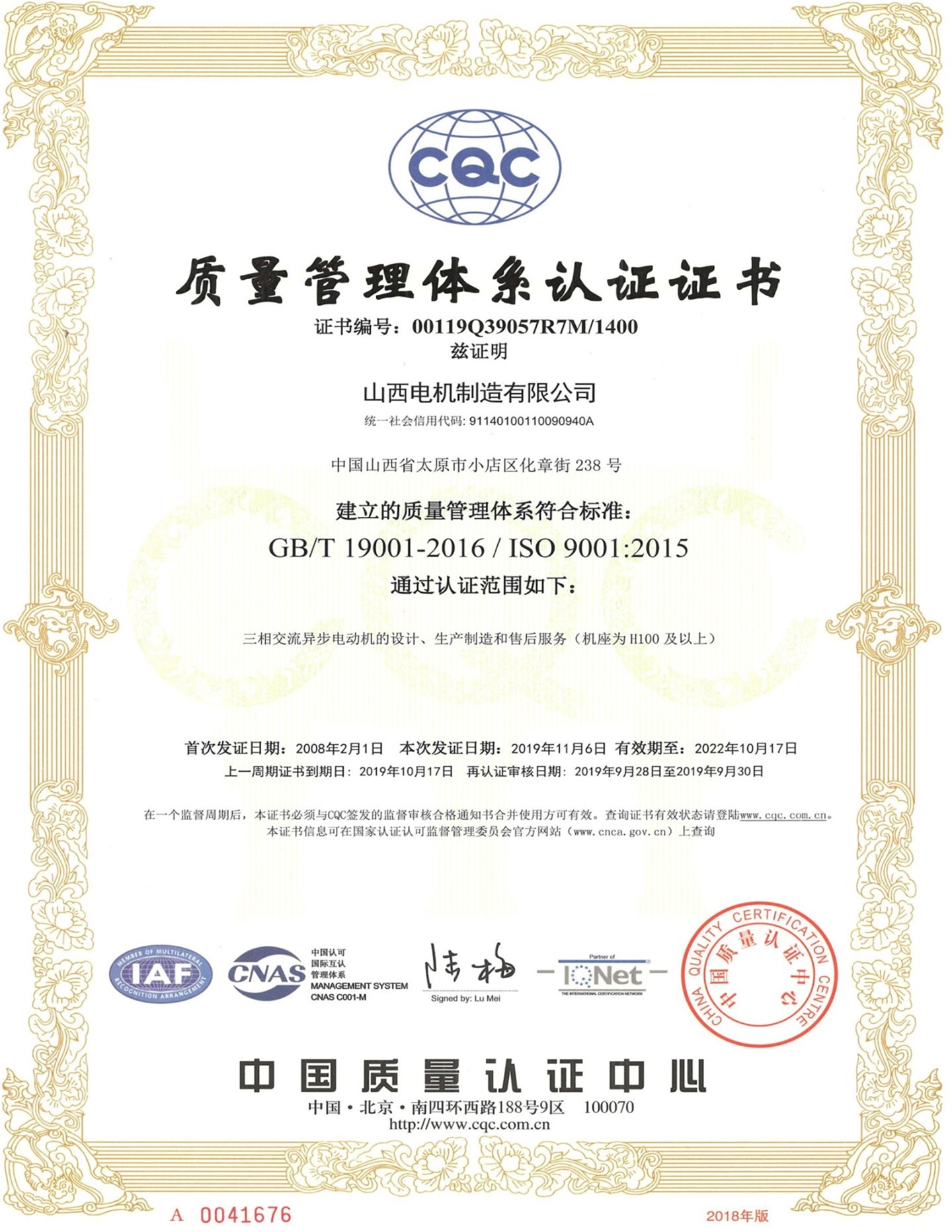 山西電機制造有限公司是一家具有70多年歷史,專業(yè)研發(fā)制造三相異步電動機的老牌國有企業(yè),注冊資金26250萬元,現(xiàn)有在崗職工一千余人。2014年5月完成整體搬遷改造,現(xiàn)址位于太原市小店區(qū)化章街238號,新增設(shè)備投資約5個億,整體裝備水平得到大幅提高。公司深度融合技術(shù)創(chuàng)新與精工制造,成功躋身"國家級高新技術(shù)企業(yè)"行列,并榮獲"省級專精特新中小企業(yè)"認證。作為中國電器工業(yè)協(xié)會中小型電機分會副理事長單位,公司持續(xù)踐行質(zhì)量強企戰(zhàn)略,相繼獲評國家級AAA企業(yè)信用等級、山西省"守合同重信用"企業(yè),榮膺"中國最具影響力品牌企業(yè)"稱號。通過了質(zhì)量管理體系、環(huán)境管理體系、職業(yè)健康安全管理體系認證,以及能源管理與知識產(chǎn)權(quán)管理體系認證。產(chǎn)品憑借卓越品質(zhì)斬獲"山西省名牌產(chǎn)品"殊榮,在行業(yè)內(nèi)樹立起極具辨識度的品牌標桿,贏得市場廣泛認可與信賴。